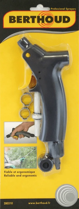 Als u op zoek bent naar een comfortabele handgreep voor uw drukspuit is het type Profile erg geschikt. Deze past op alle Floraly, Elyte en Vermorel drukspuiten van het merk Berthoud. De hoek tussen de handgreep en de lans verzekert een natuurlijke houding van de pols. De vloeistoftoevoer wordt direct afgesloten bij het loslaten van de trigger. Daardoor is deze handgreep erg betrouwbaar. Daarnaast voorkomt het lekkage en verspilling.